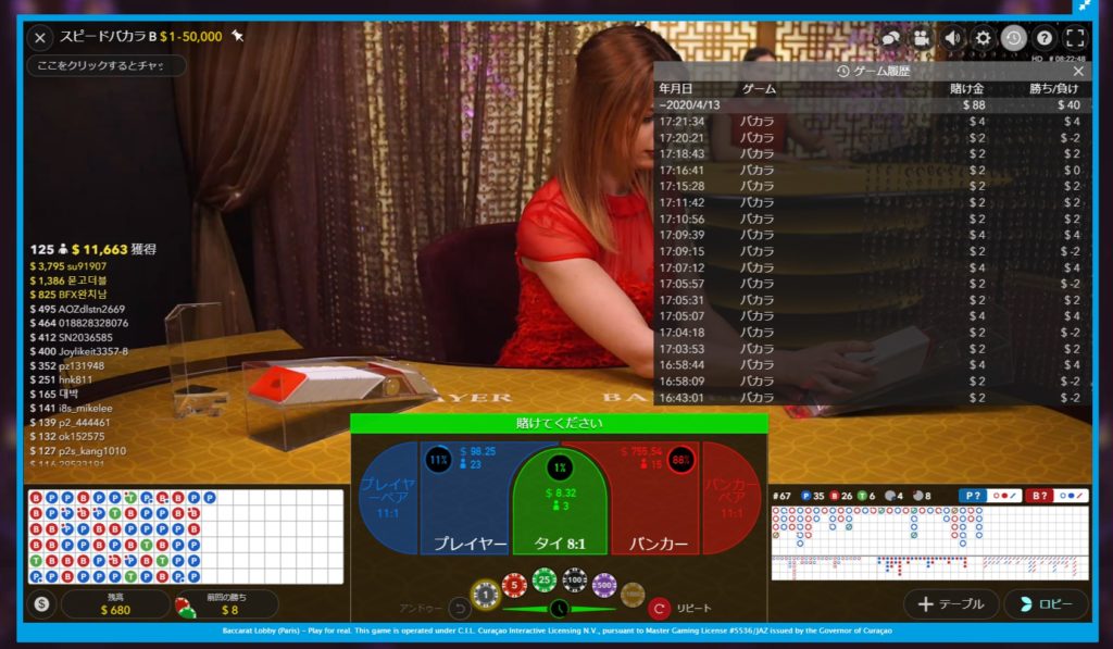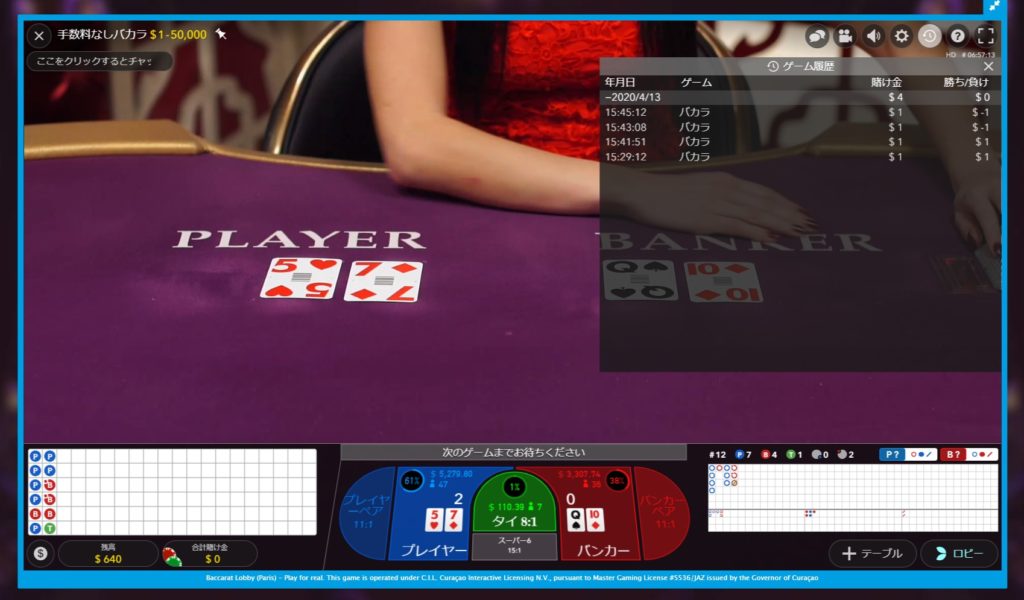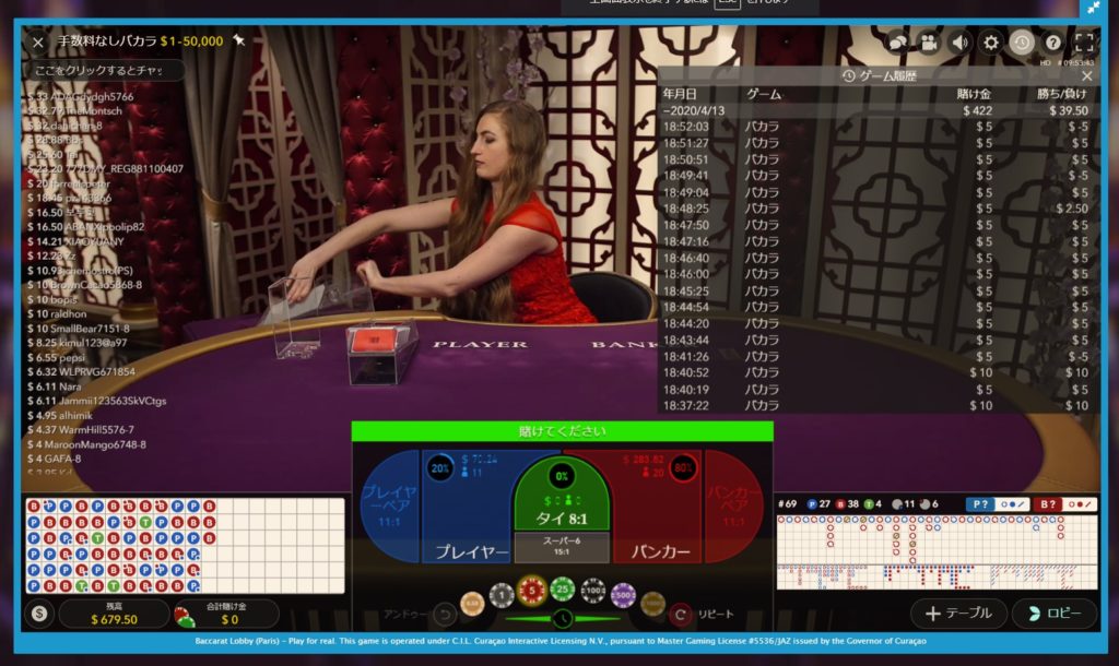 10テーブルくらいのバカラテーブルから、好きなテーブルを選択すれば良いだけだが、初めてのことなので色々と困った。