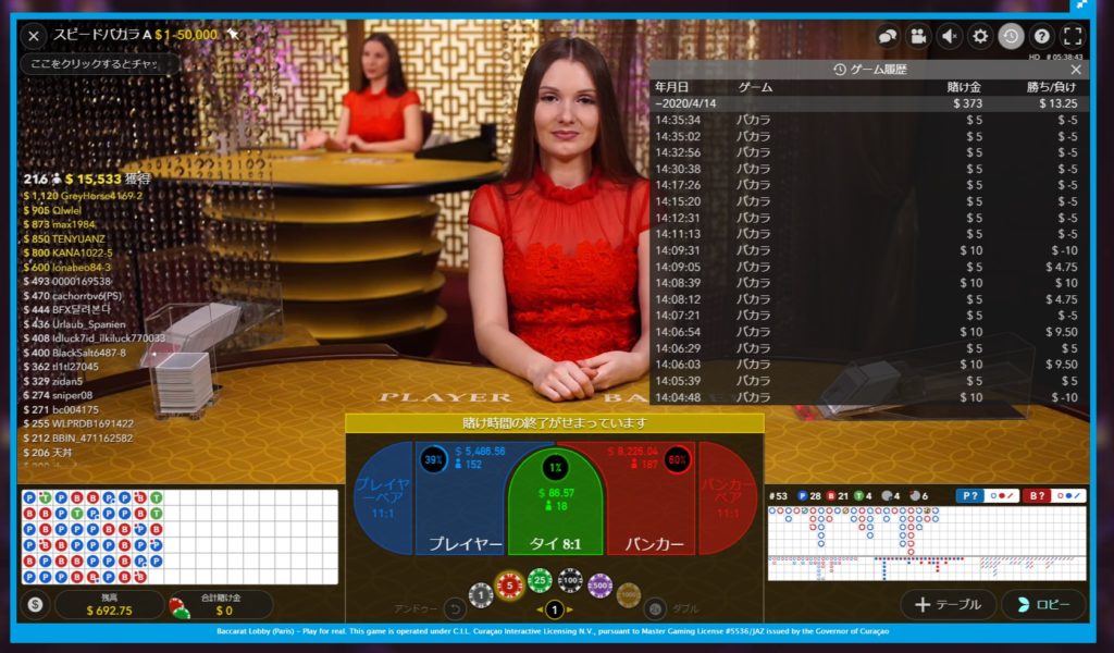 テーブルを変えながらルックして見極めても、連敗、、、